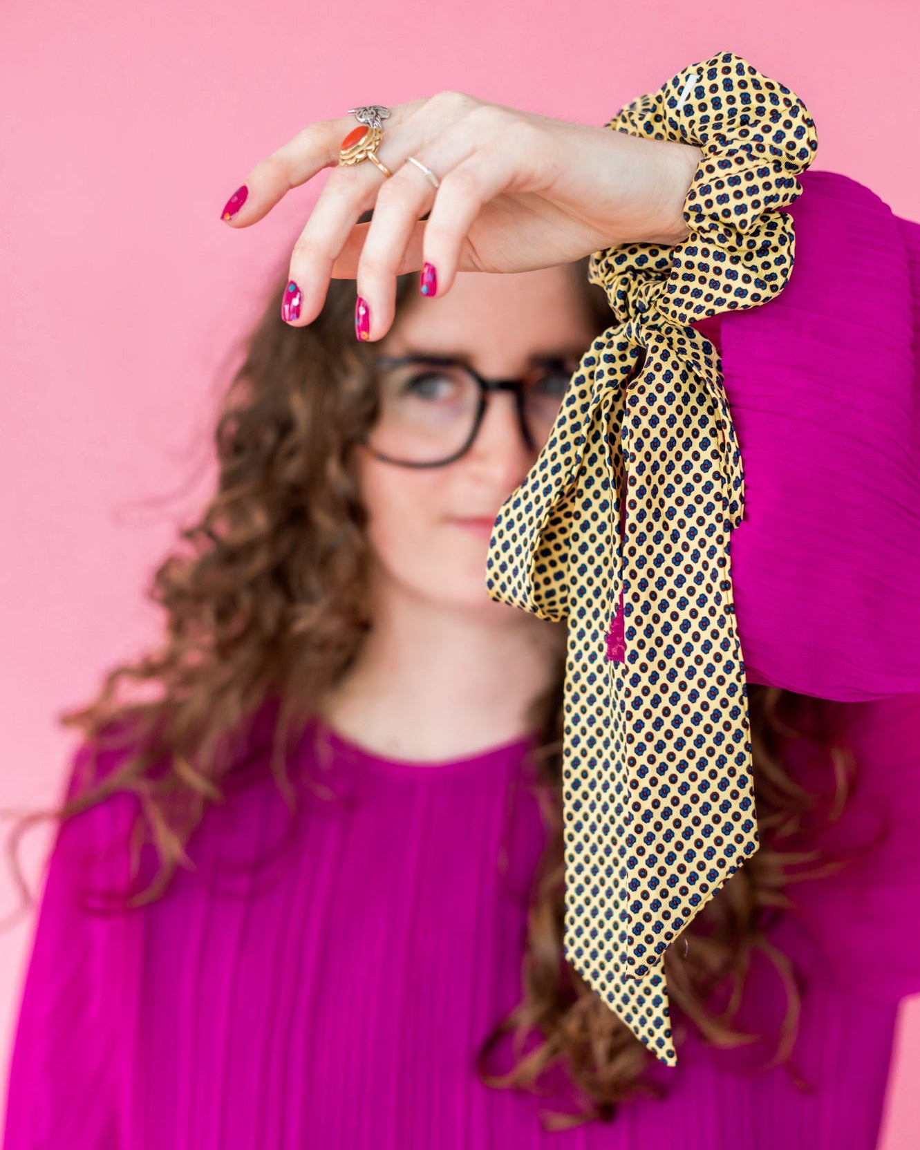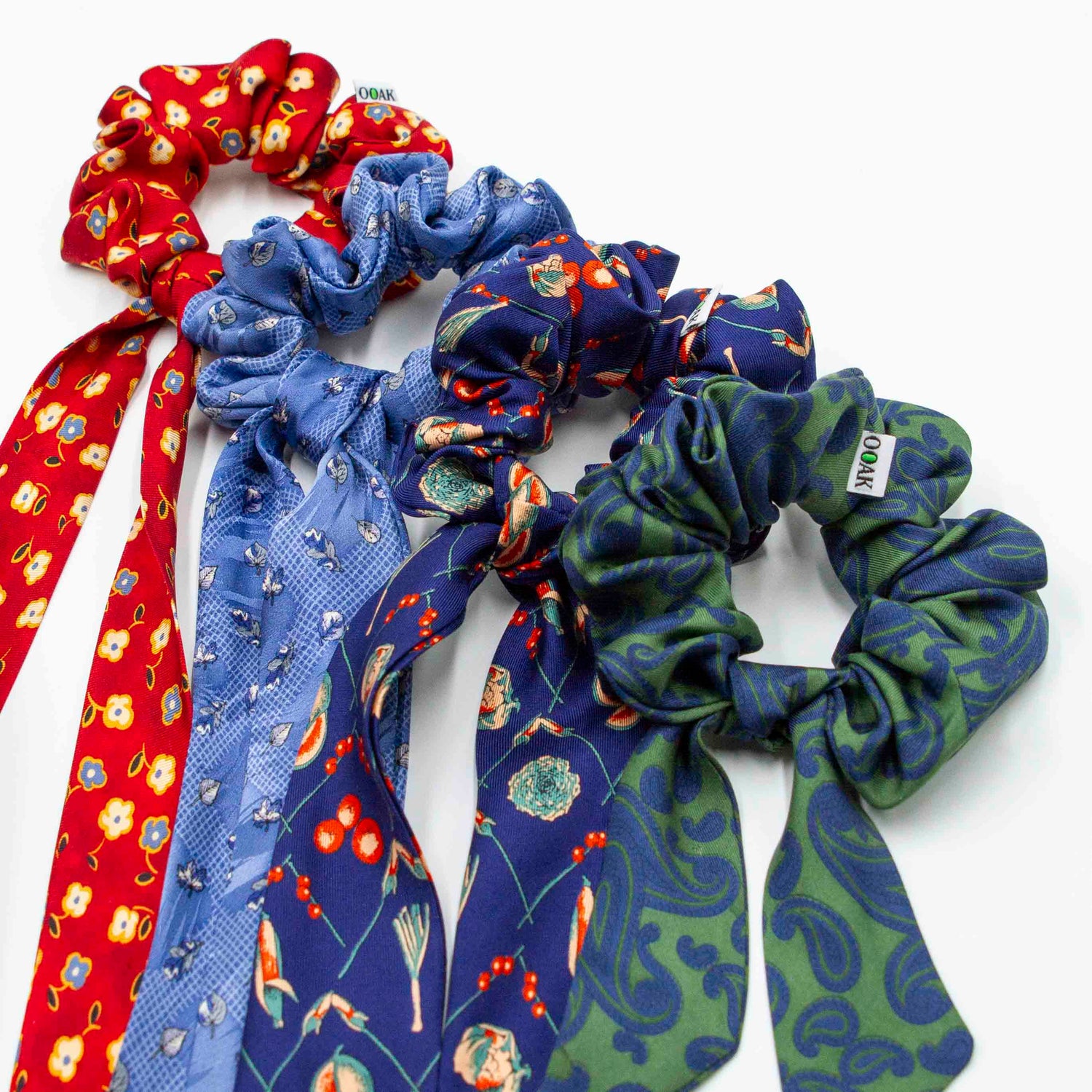 Onze scrunchies met lint zijn gemaakt van pre-loved stropdassen. De linten kunnen...