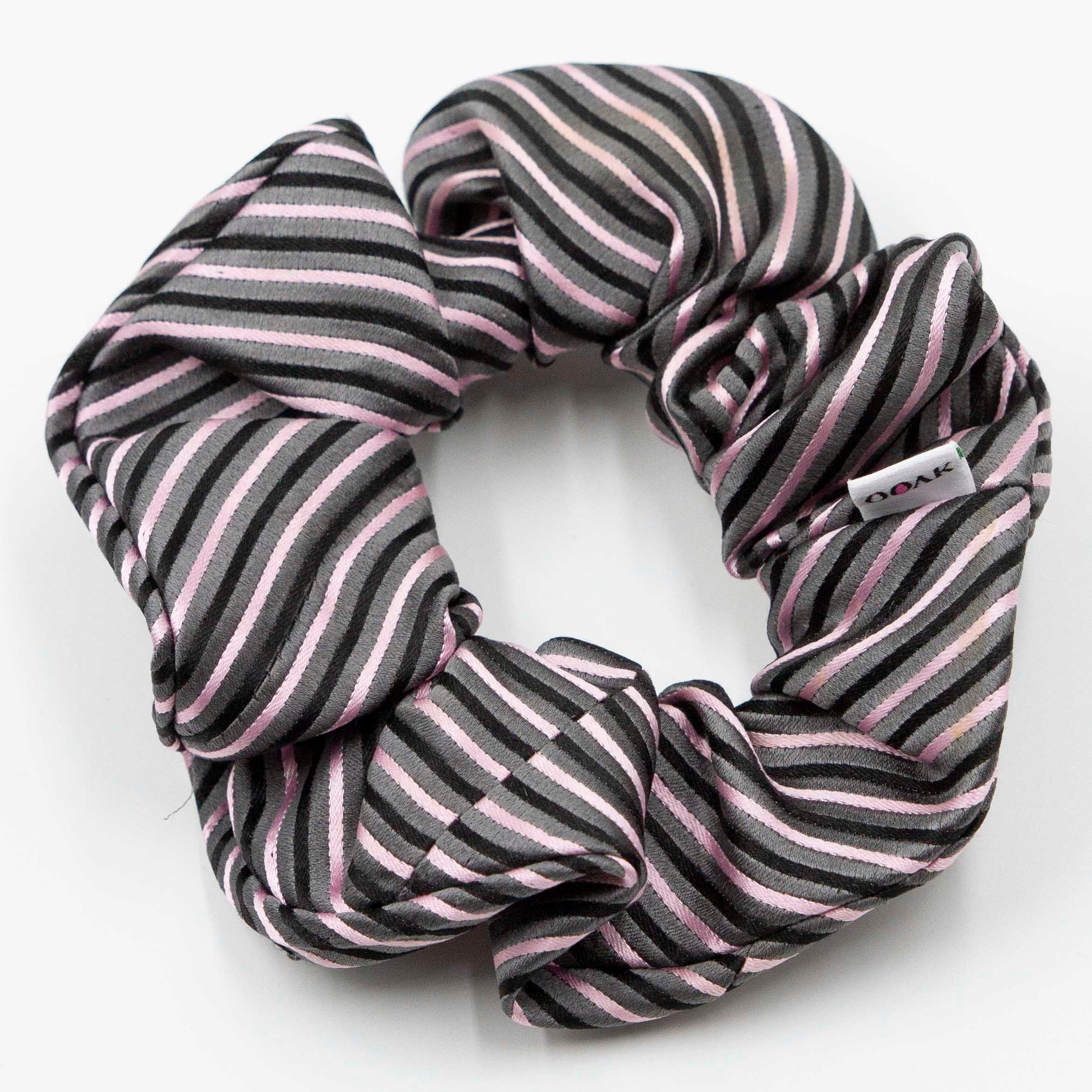 Fun fact: this scrunchie is truly One Of A Kind, there is only 1 of them. The volume of the scrunchie is determined by the fashion trends of the period in which the tie was made, and whether the tie was narrow or wide