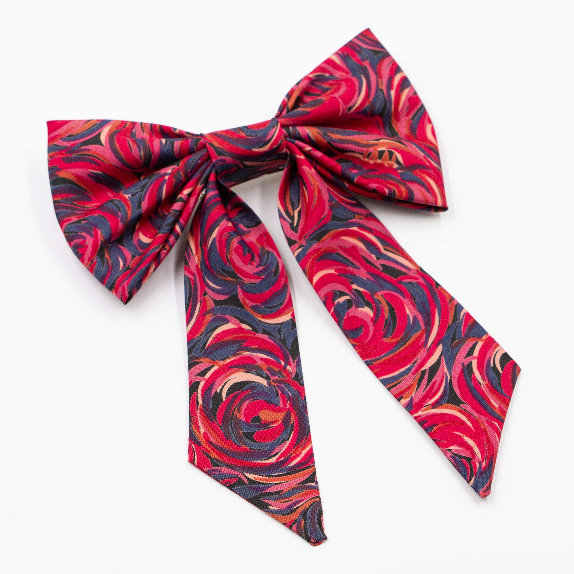 Deze French Barettte haarstrik met linten is helemaal met de hand gemaakt van een preloved stropdas en een echte eye-catcher in je haar
