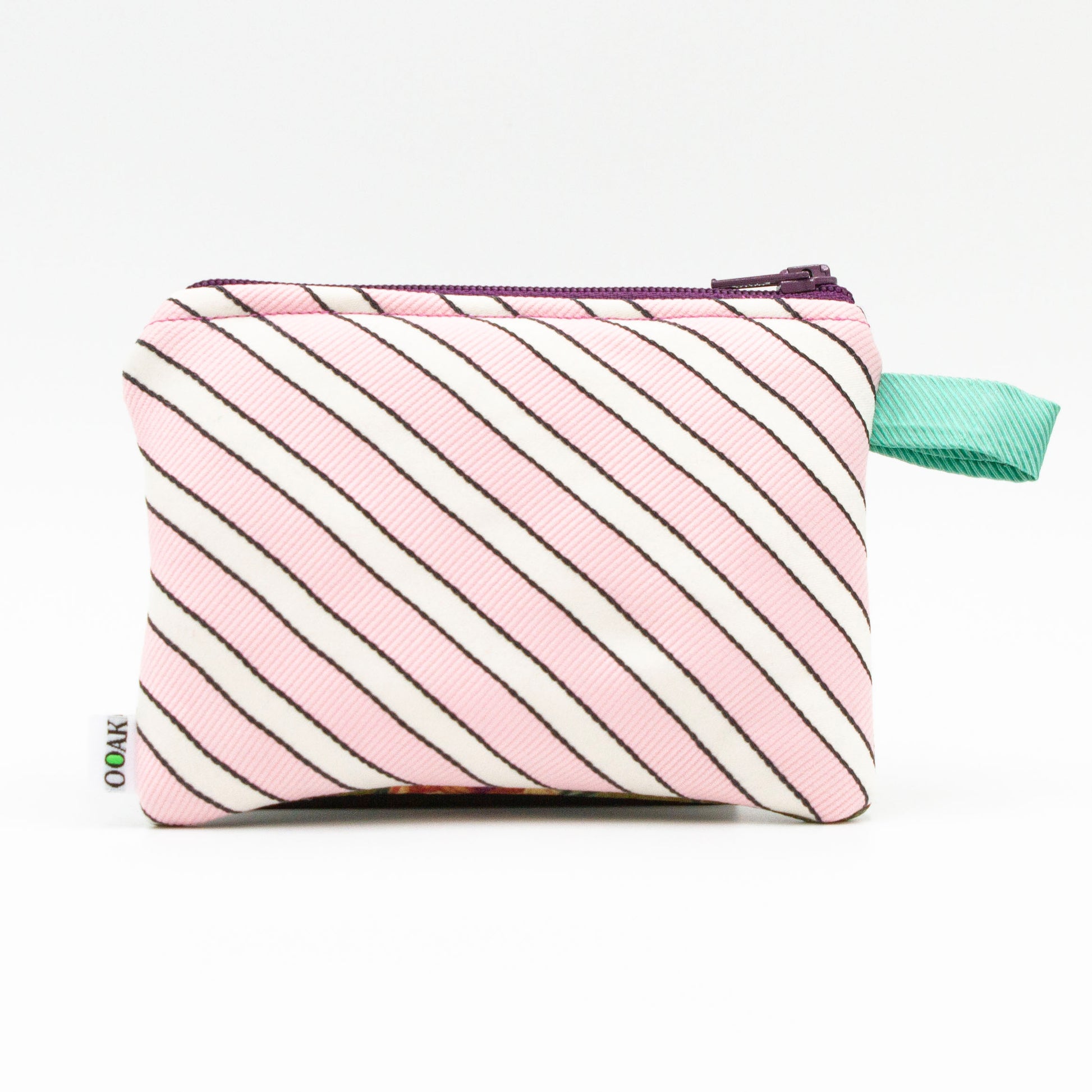 Deze portemonnee met ritssluiting is gemaakt van 3 verschillende stropdassen en andere preloved materialen zoals de rits, voeringstof en garen.