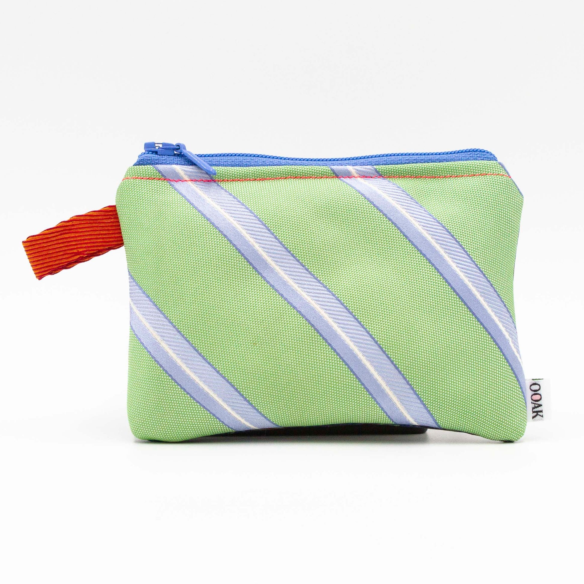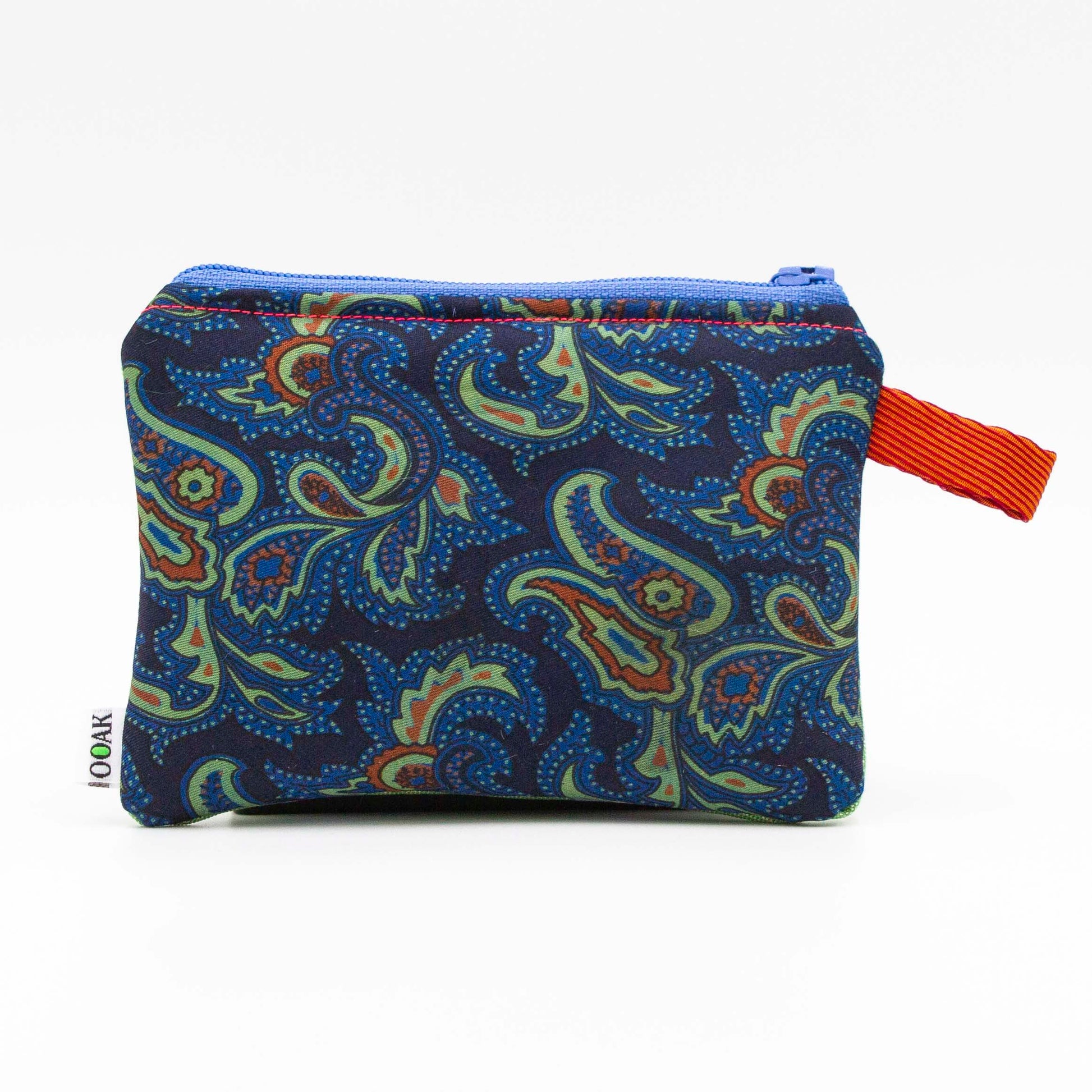 Deze portemonnee met ritssluiting is gemaakt van 3 verschillende stropdassen en andere preloved materialen zoals de rits, voeringstof en garen.