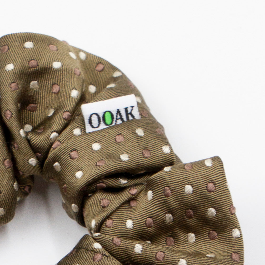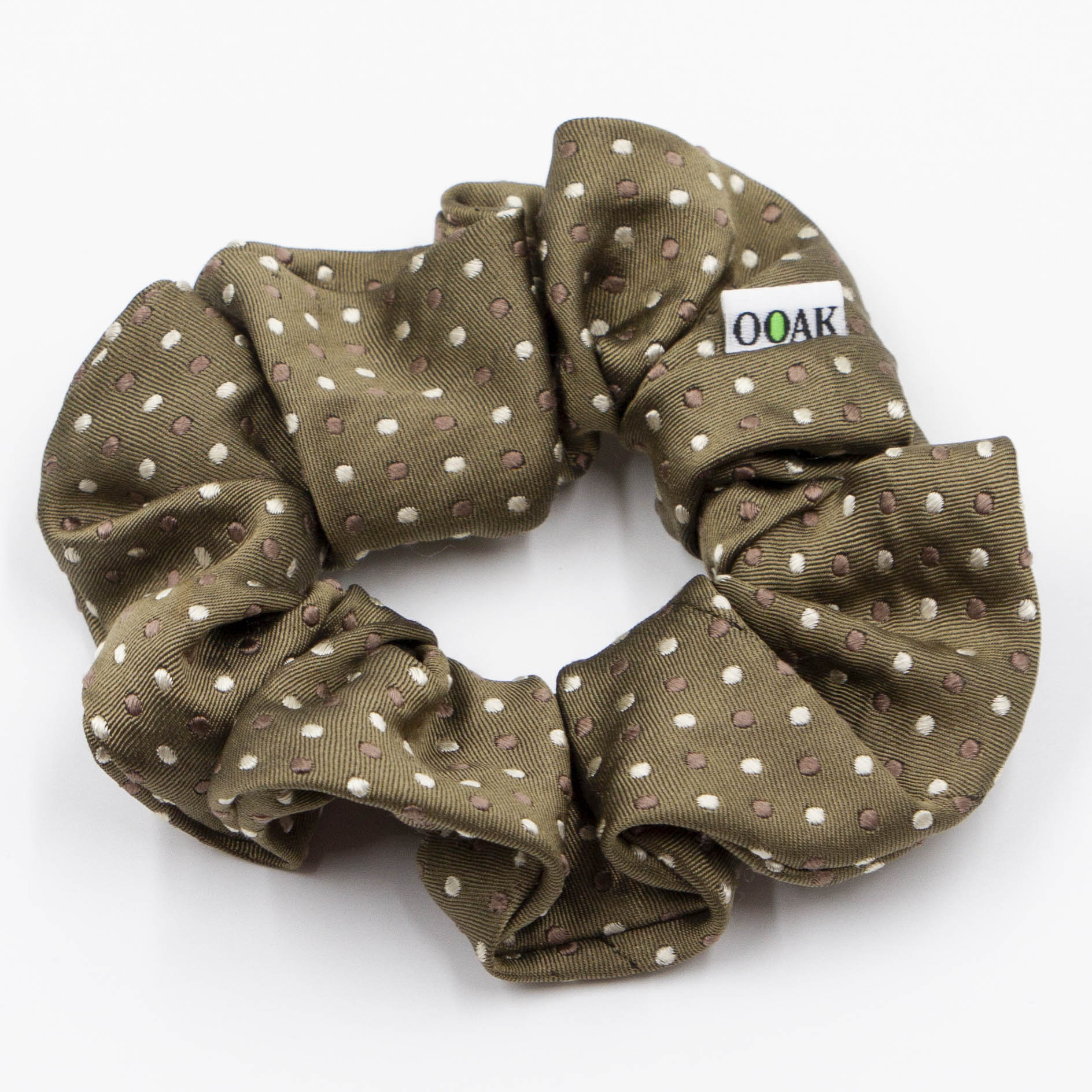 Leuk feitje: deze scrunchie is écht One Of A Kind, er bestaat er namelijk maar 1 van. Het volume van de scrunchie wordt bepaald door de modetrends van de periode waarin de stropdas gemaakt is, en of de stropdas dus smal of breed was