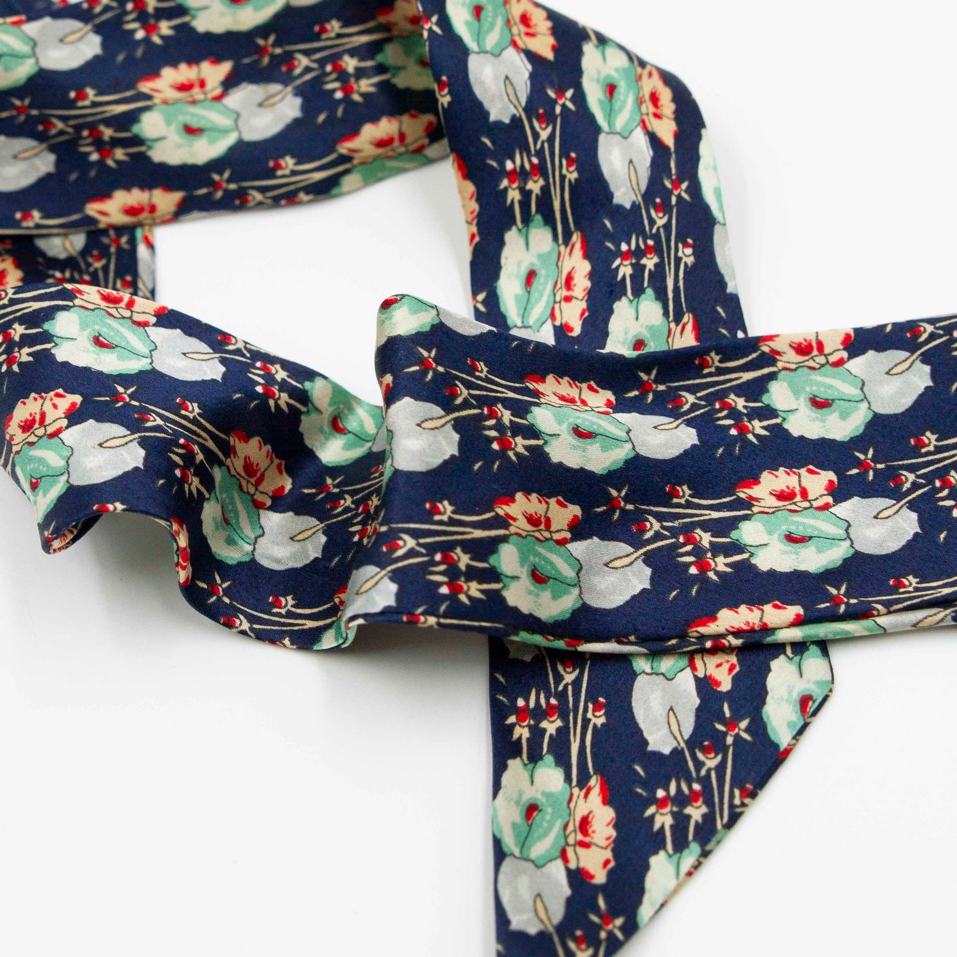 Deze fijne scrunchie met lint is gemaakt van een preloved stropdas en zorgvuldig met de hand afgewerkt.