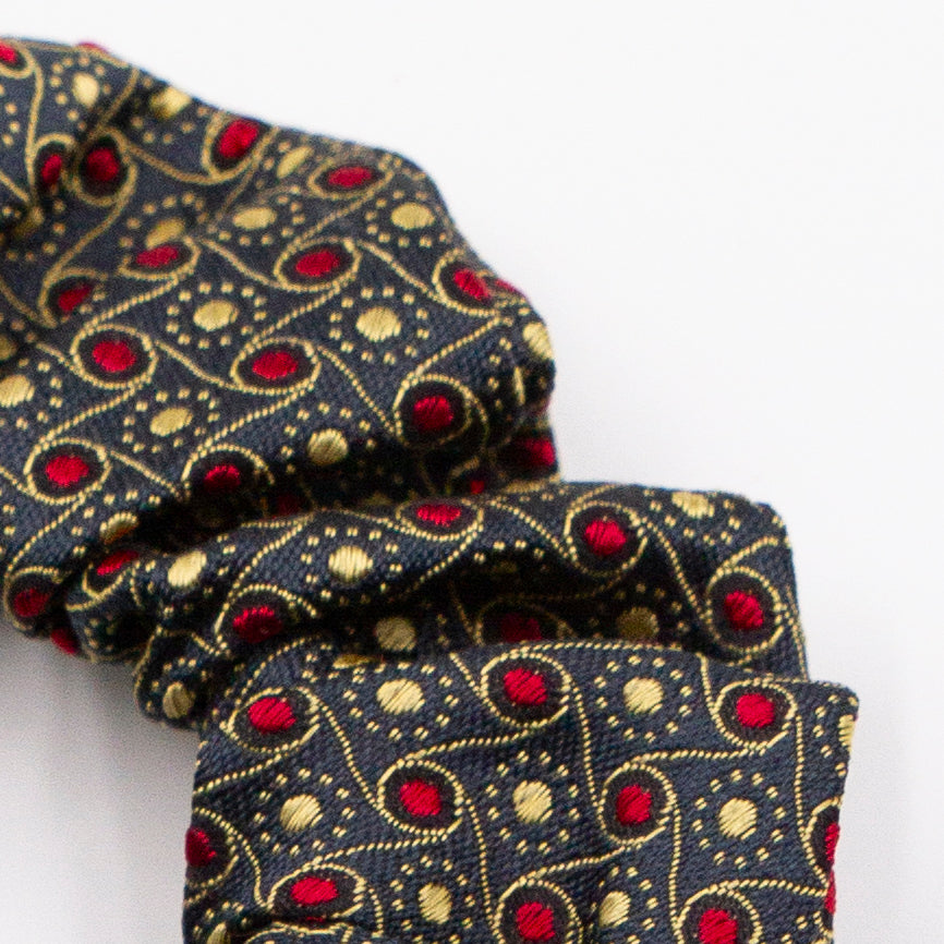 Leuk feitje: deze scrunchie is écht One Of A Kind, er bestaat er namelijk maar 1 van. Het volume van de scrunchie wordt bepaald door de modetrends van de periode waarin de stropdas gemaakt is, en of de stropdas dus smal of breed was