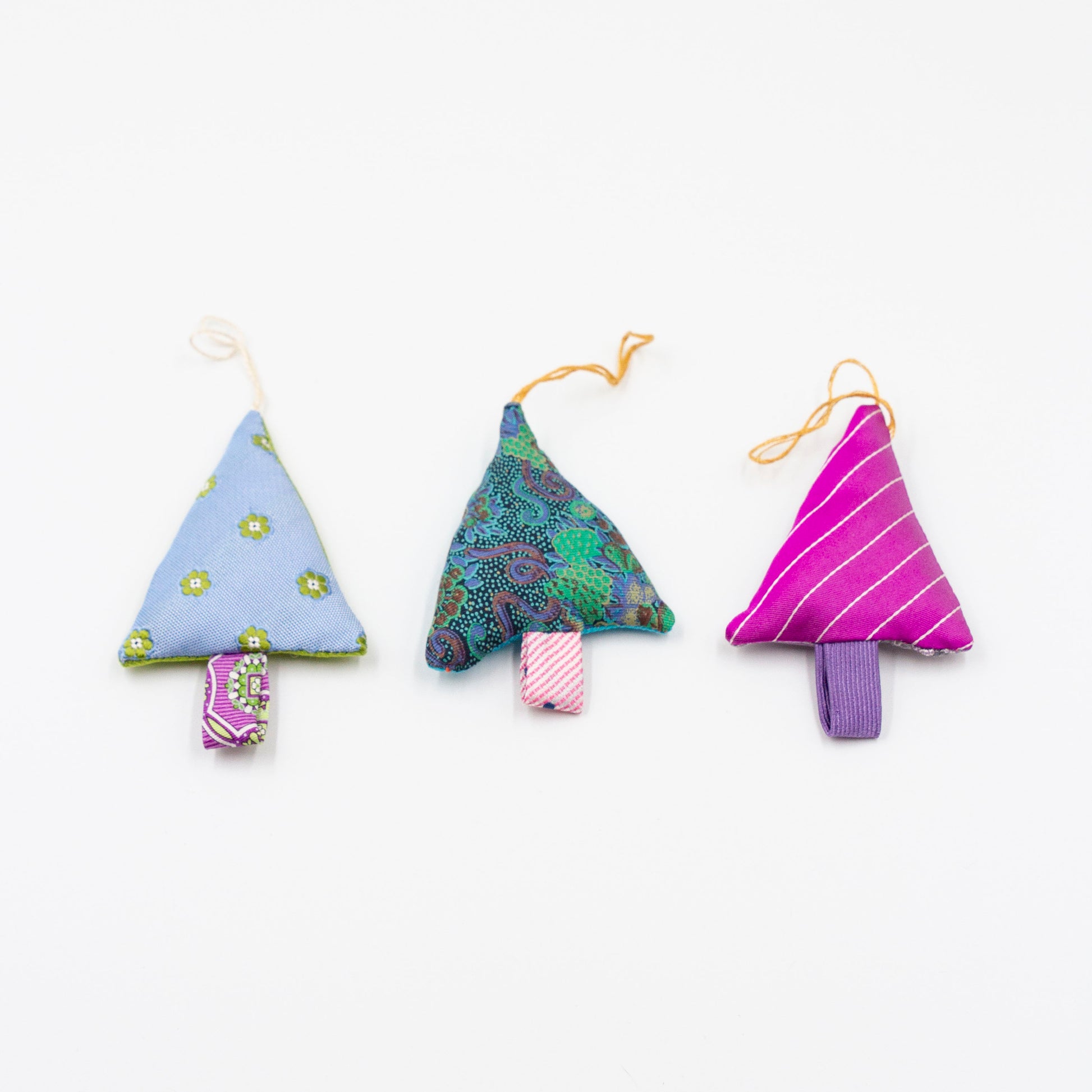 Dit leuke setje kersthangers is gemaakt van restjes stropdasstof welke overblijven na het maken van onze andere producten.