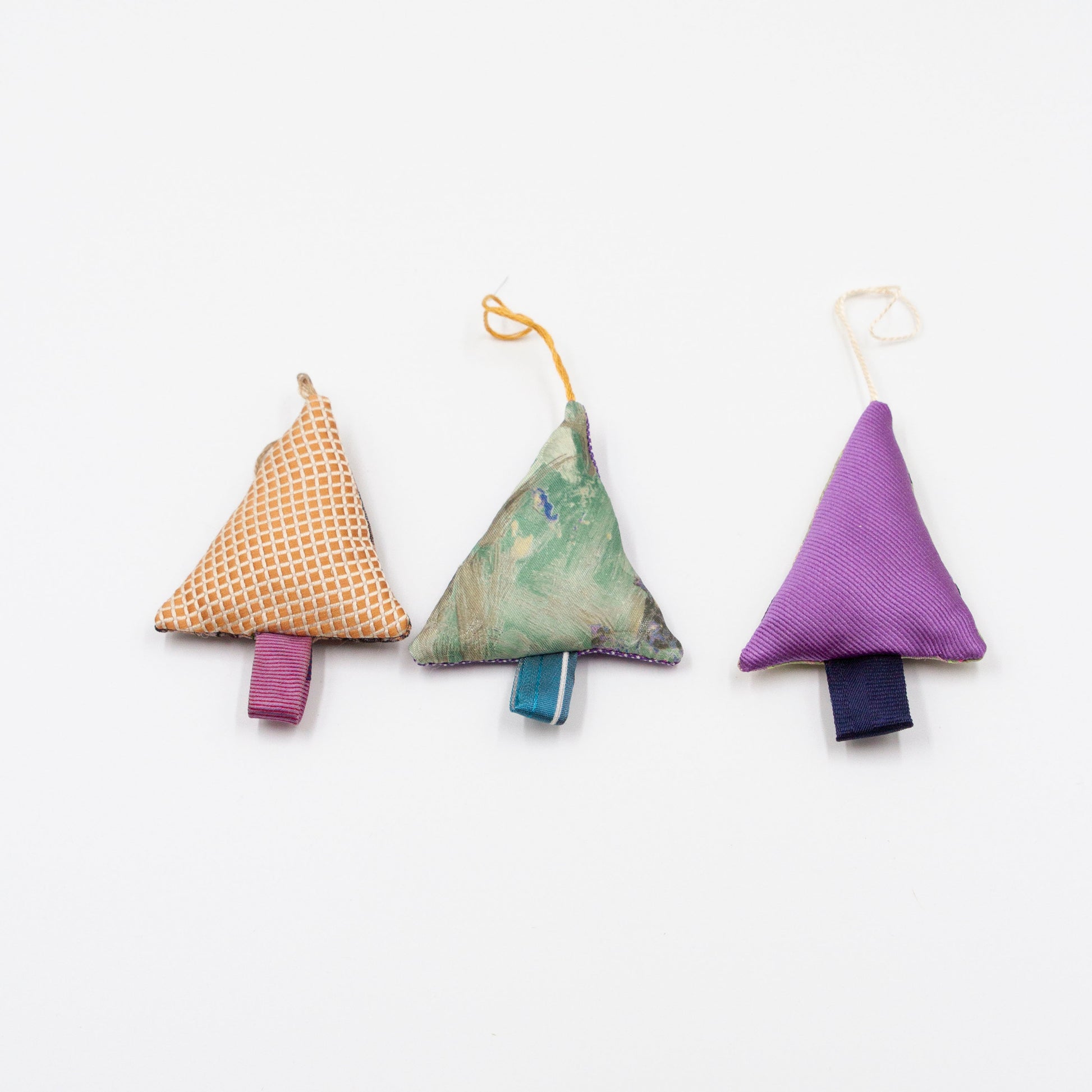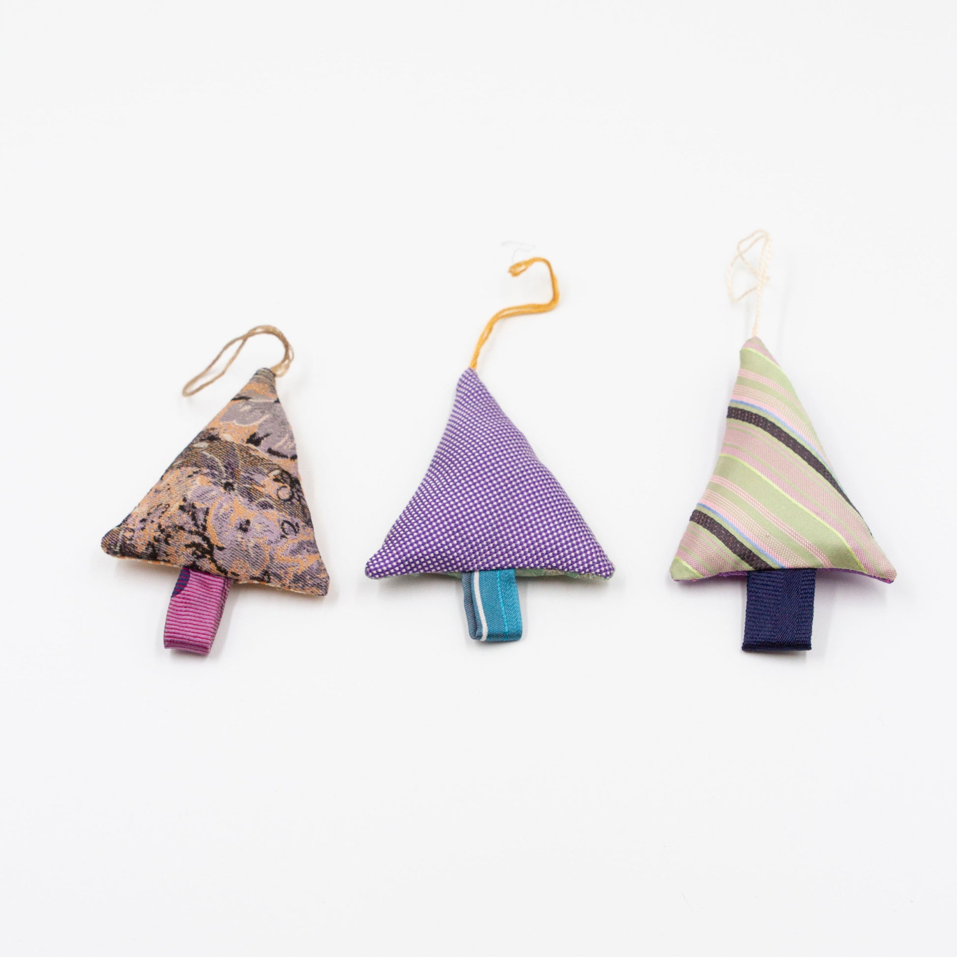 Dit leuke setje kersthangers is gemaakt van restjes stropdasstof welke overblijven na het maken van onze andere producten.