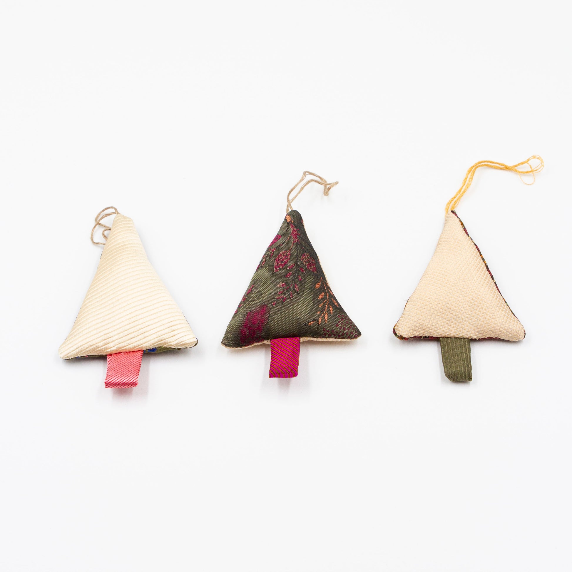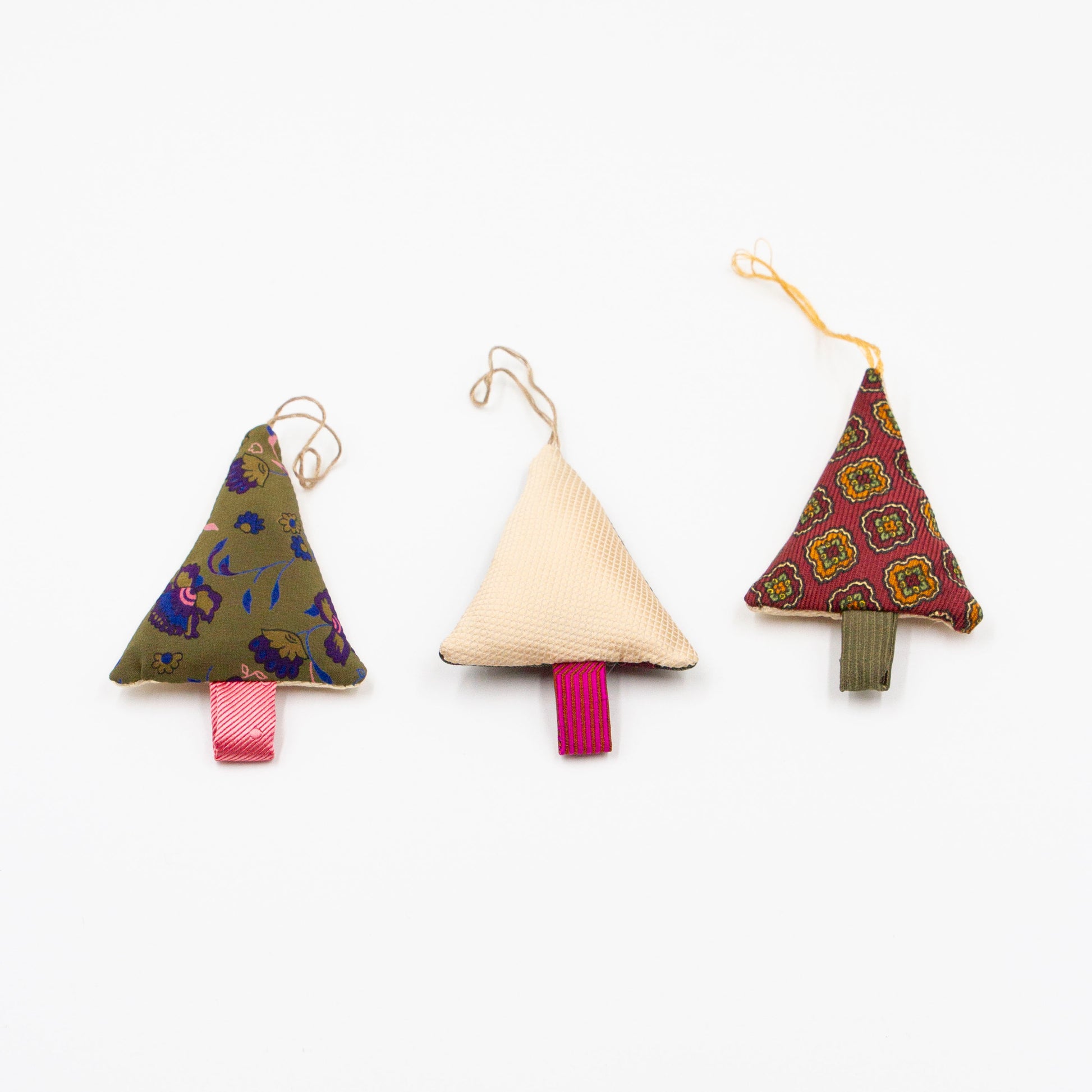 Dit leuke setje kersthangers is gemaakt van restjes stropdasstof welke overblijven na het maken van onze andere producten.