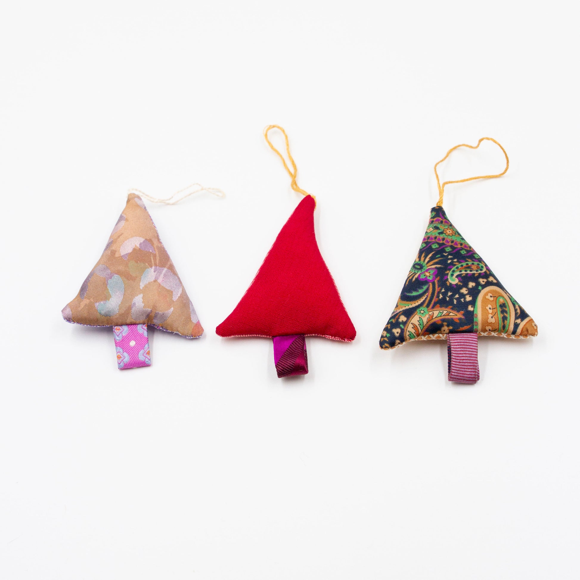 Dit leuke setje kersthangers is gemaakt van restjes stropdasstof welke overblijven na het maken van onze andere producten.