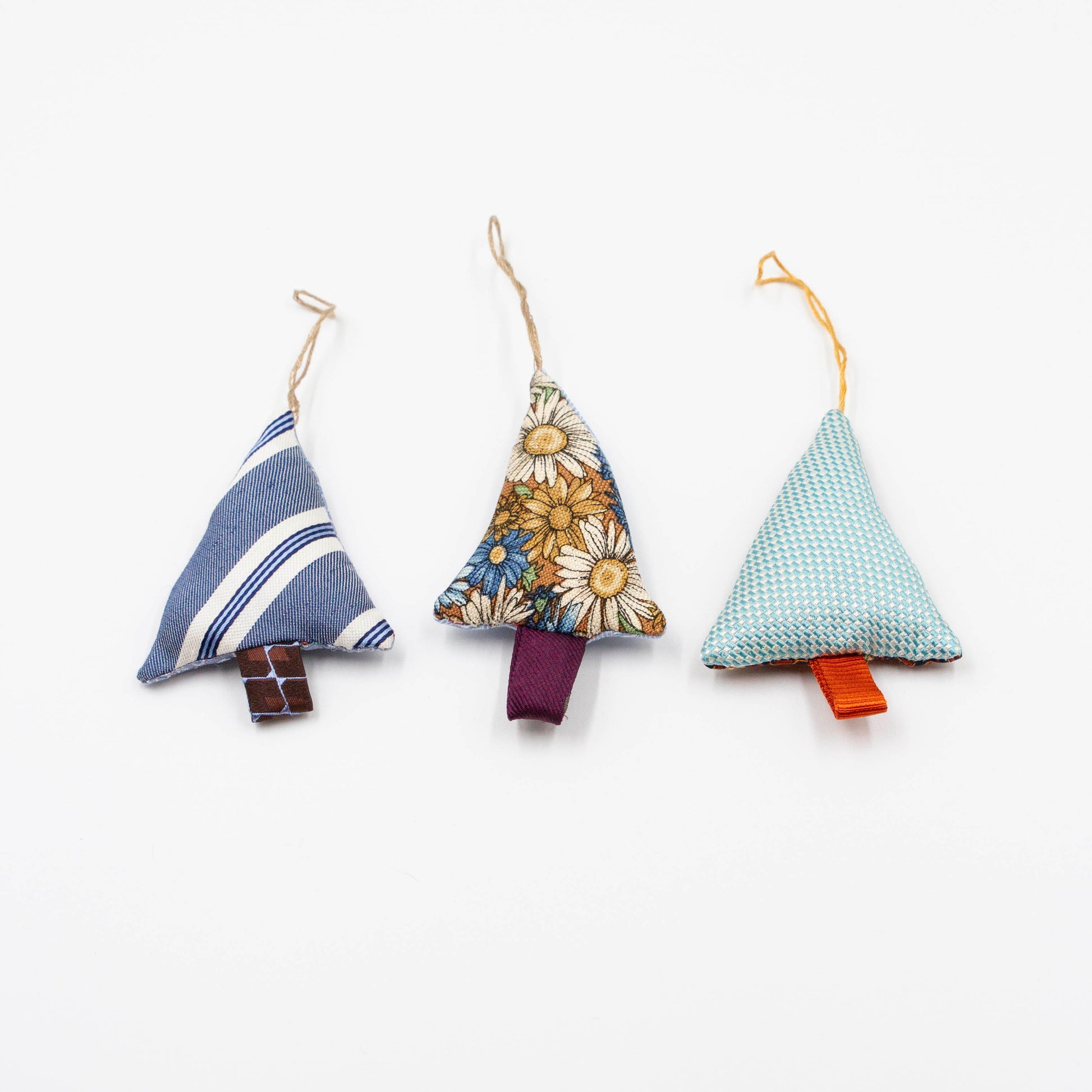 Dit leuke setje kersthangers is gemaakt van restjes stropdasstof welke overblijven na het maken van onze andere producten.