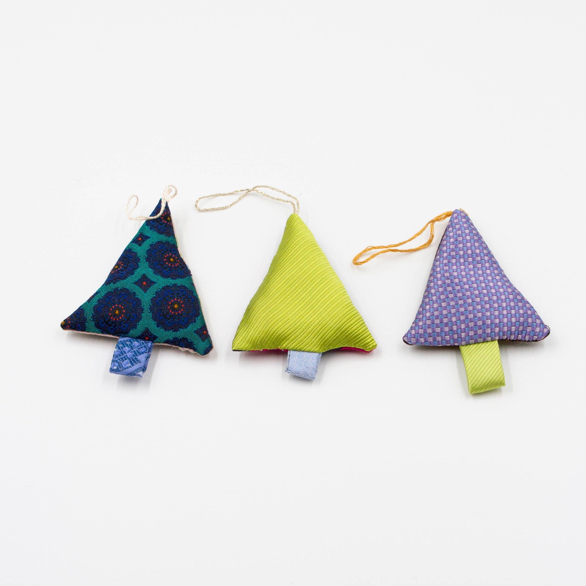 Dit leuke setje kersthangers is gemaakt van restjes stropdasstof welke overblijven na het maken van onze andere producten.