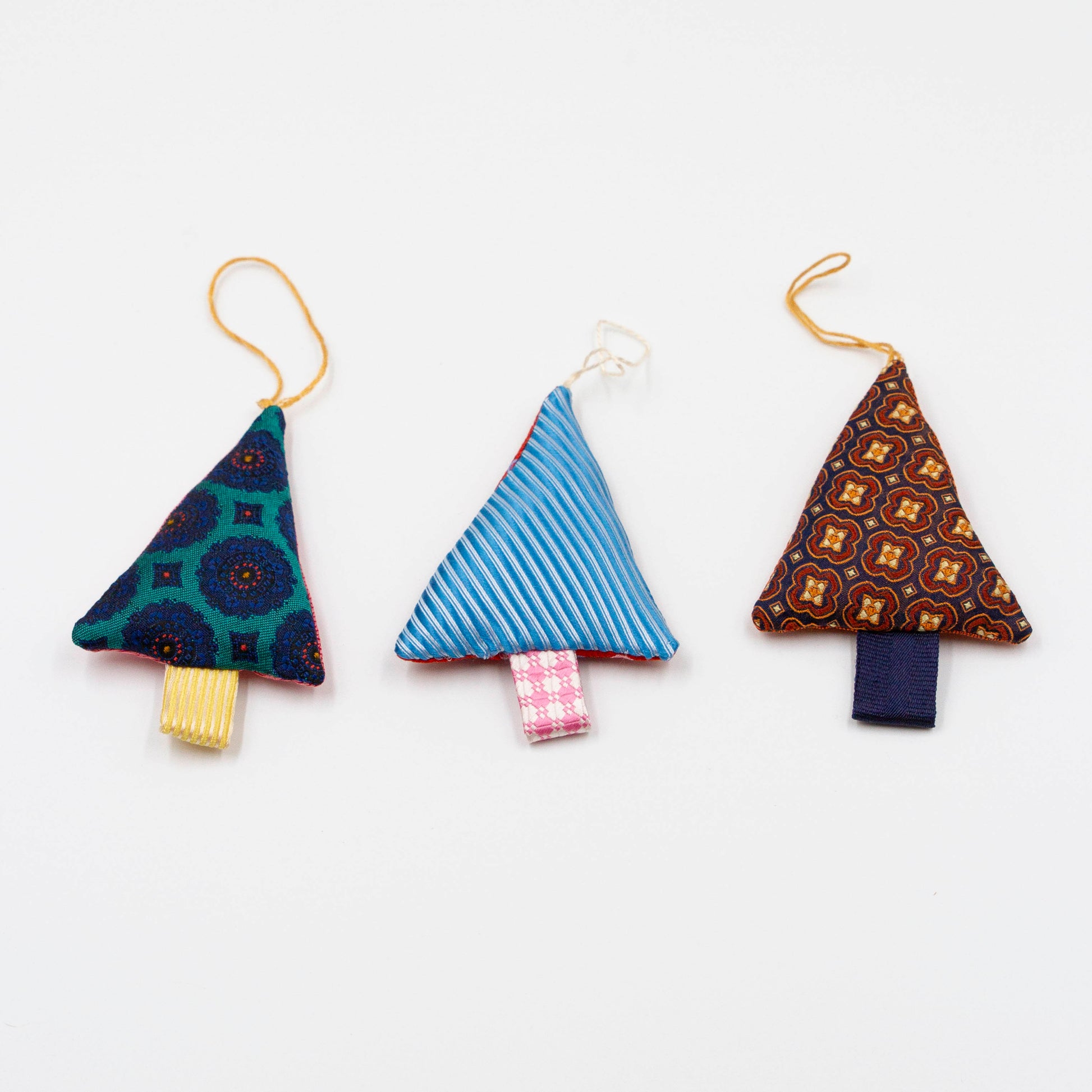 Dit leuke setje kersthangers is gemaakt van restjes stropdasstof welke overblijven na het maken van onze andere producten.