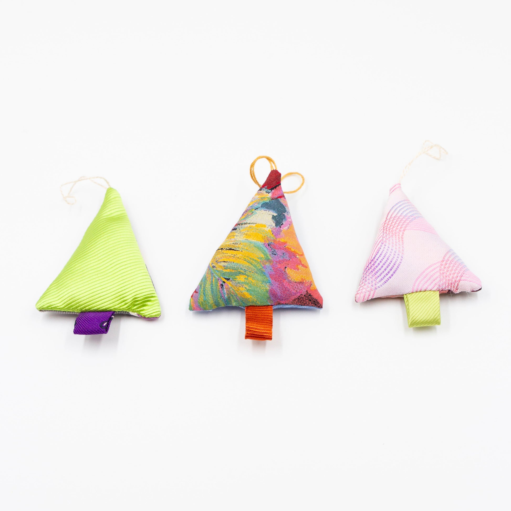 Dit leuke setje kersthangers is gemaakt van restjes stropdasstof welke overblijven na het maken van onze andere producten.
