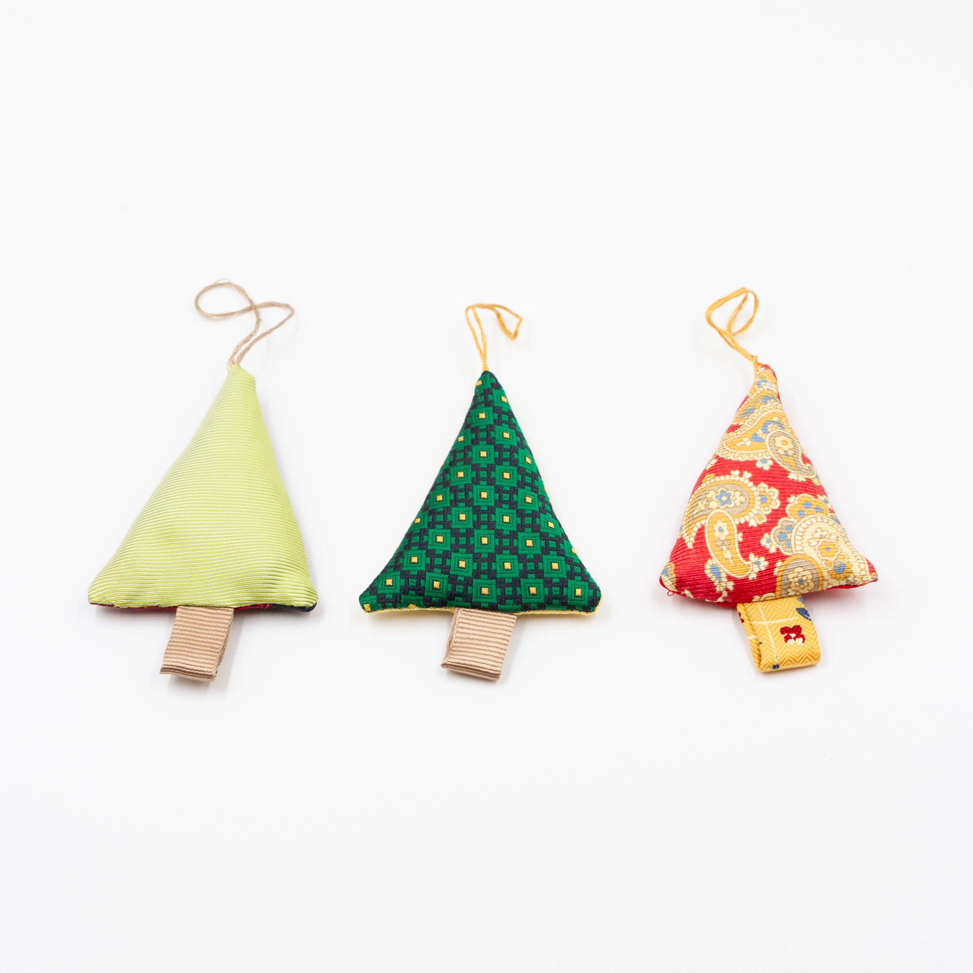 Dit leuke setje kersthangers is gemaakt van restjes stropdasstof welke overblijven na het maken van onze andere producten.