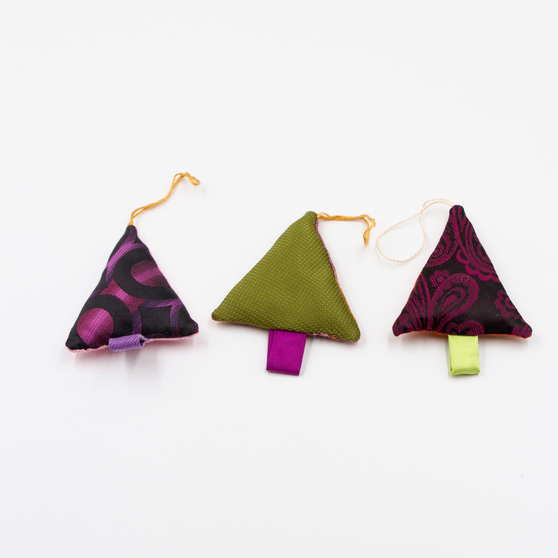 Dit leuke setje kersthangers is gemaakt van restjes stropdasstof welke overblijven na het maken van onze andere producten.