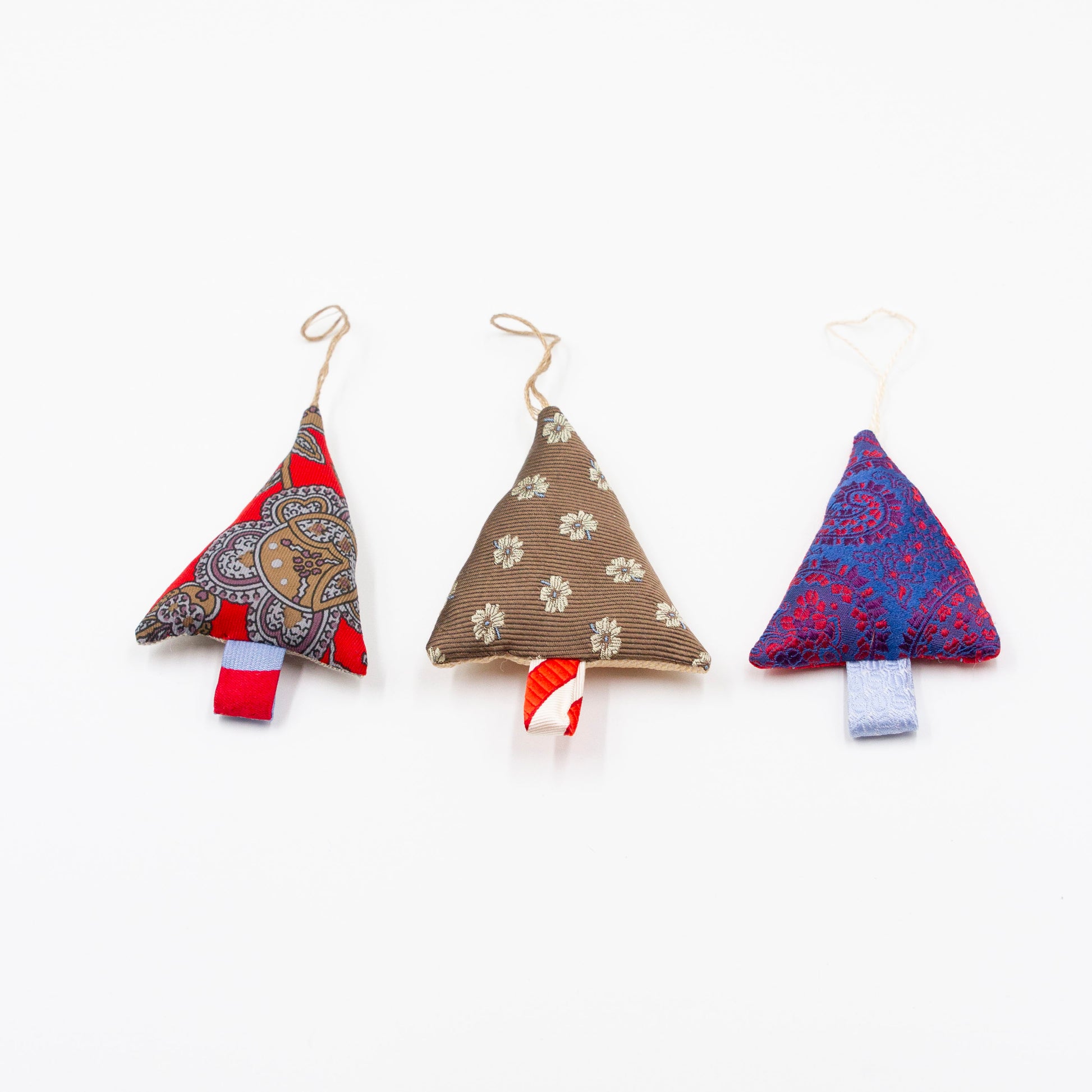 Dit leuke setje kersthangers is gemaakt van restjes stropdasstof welke overblijven na het maken van onze andere producten.