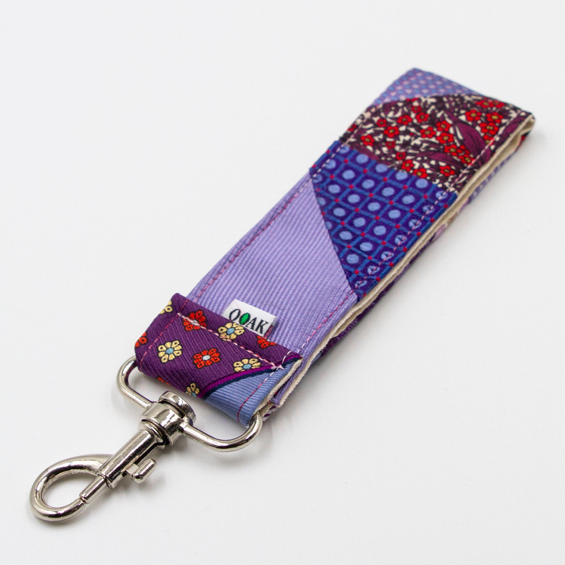 Deze kleurrijke sleutelhanger is gemaakt van de kleinste restjes stropdasstof wat overblijft na het maken van onze andere items.