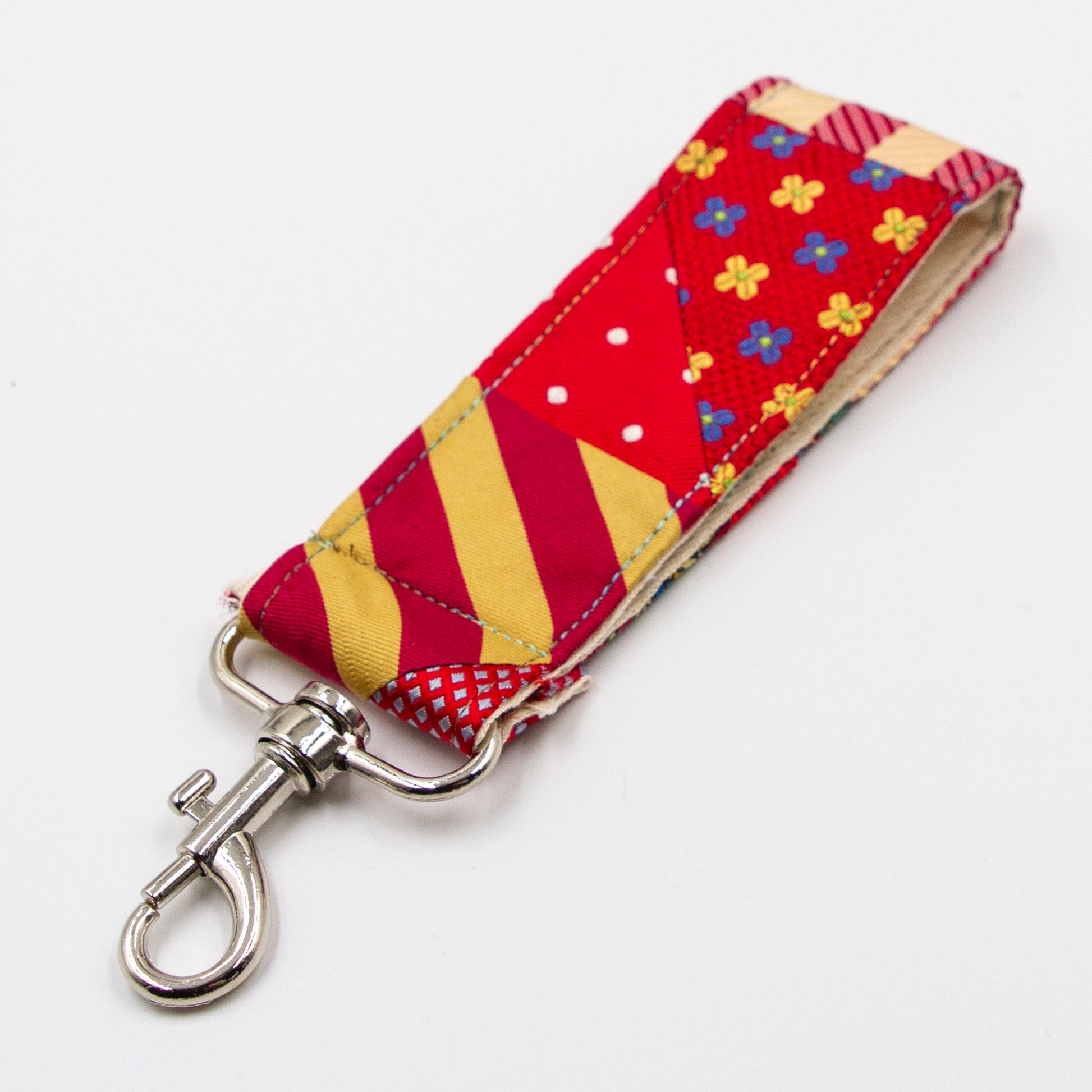 Deze kleurrijke sleutelhanger is gemaakt van de kleinste restjes stropdasstof wat overblijft na het maken van onze andere items.